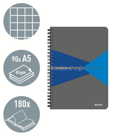 Spirálfüzet, A5, kockás, 90 lap, PP borító, LEITZ "Office", szürke-kék