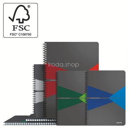 Spirálfüzet, A5, vonalas, 90 lap, PP borító, LEITZ "Office", szürke