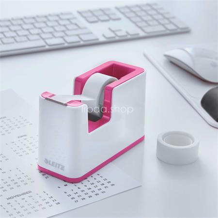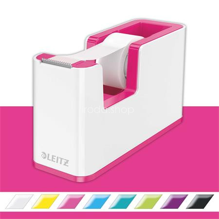 Ragasztószalag-adagoló, asztali, feltöltött, LEITZ "Wow", fehér-rózsaszín