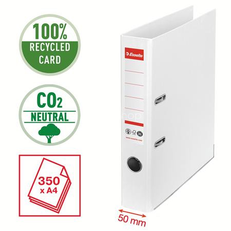 Iratrendező, 50 mm, A4, környezetbarát, élvédő sínnel, ESSELTE "No.1", fehér