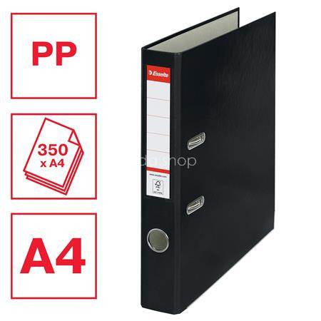 Iratrendező, 50 mm, A4, PP/karton, élvédő sínnel, ESSELTE "Economy", fekete