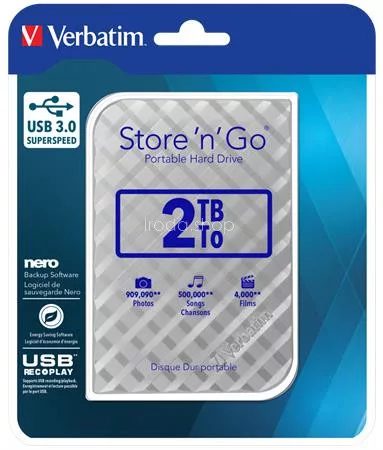 A Verbatim Store n Go hordozható merevlemez nagy tárolási teljesítményt kínál az USB 3.0 „Super Speed” csatlakozófelületen keresztül. Az USB 3.0 akár tízszer nagyobb sebességű átvitelt tesz lehetővé, mint az USB 2.0 felület (az USB busz sebességét alapul véve), ezáltal kiemelkedően nagy adatátviteli sebességet kínál út közben is.