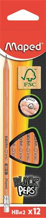 Grafitceruza radírral, HB, háromszögletű, MAPED "Black'Peps"