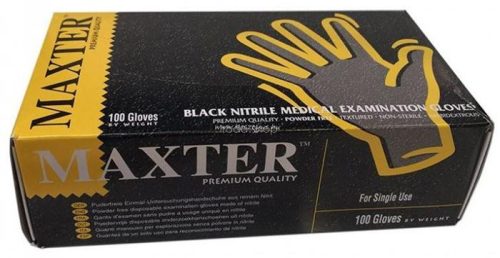 Védőkesztyű, egyszer használatos, nitril, S méret, 100 db, púder nélküli, fekete