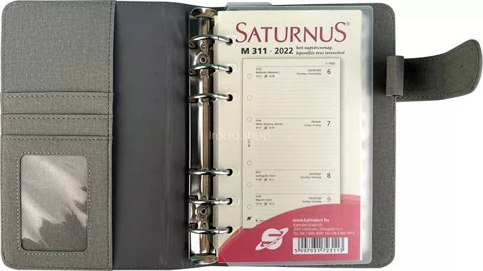 Kalendárium, gyűrűs, betétlapokkal, "M", műbőr, SATURNUS, "229", szürke-kék