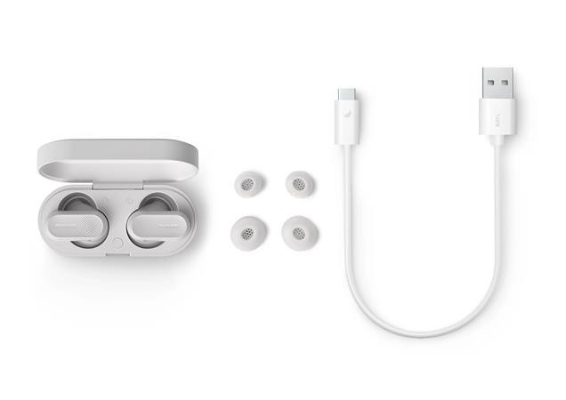 Minden hely tökéletes a zenehallgatáshoz a zajkioltó valódi vezeték nélküli fülhallgatóval -Bluetooth verzió: 5.3 -Bluetooth profilok: A2DP, AVRCP, HFP, TMAP -vízállóság: IPX4 -frekvenciasáv: 20-20000 Hz -hangszóró átmérője: 10 mm -impedancia: 16 ohm -max. terhelhetőség: 10 mW -max. hatótávolság: 10 m -érzékenység: 104 dB -töltési idő: 2 óra -akkumulátor kapacitása (tok): 420 mAh -akkumulátor kapacitása (fülhallgató): 58 mAh -fülhallgató mérete (sz x mé x ma) 4,00 x 2,50 x 3,10 cm -töltőtok mérete (sz x mé x ma) 6,20 x 2,80 x 3,60 cm -teljes súly: 0,045 kg -töltőkábel: USB-C (2m) Itt megtekinthető és letölthető a hallásvédelmi tájékoztató.