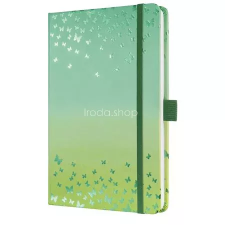 Jegyzetfüzet, exkluzív, 135x203 mm, vonalas, 87 lap, keményfedeles, SIGEL "Jolie" Butterfly Confetti, lime