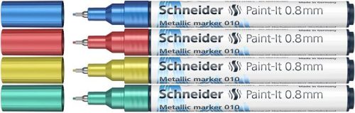 Akrilmarker készlet, 0,8 mm, SCHNEIDER "Paint-It 010", 4 különböző metálszín